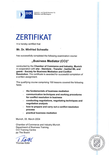 dort u.a. prüfungsrelevante Vorlesungen über Wirtschaftsmediation für Bachelor- und MBA-Studenten |